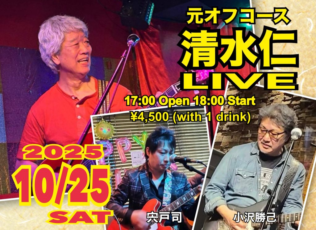 元オフコース、清水仁さんの二度目のマークⅡライブが決定しました。