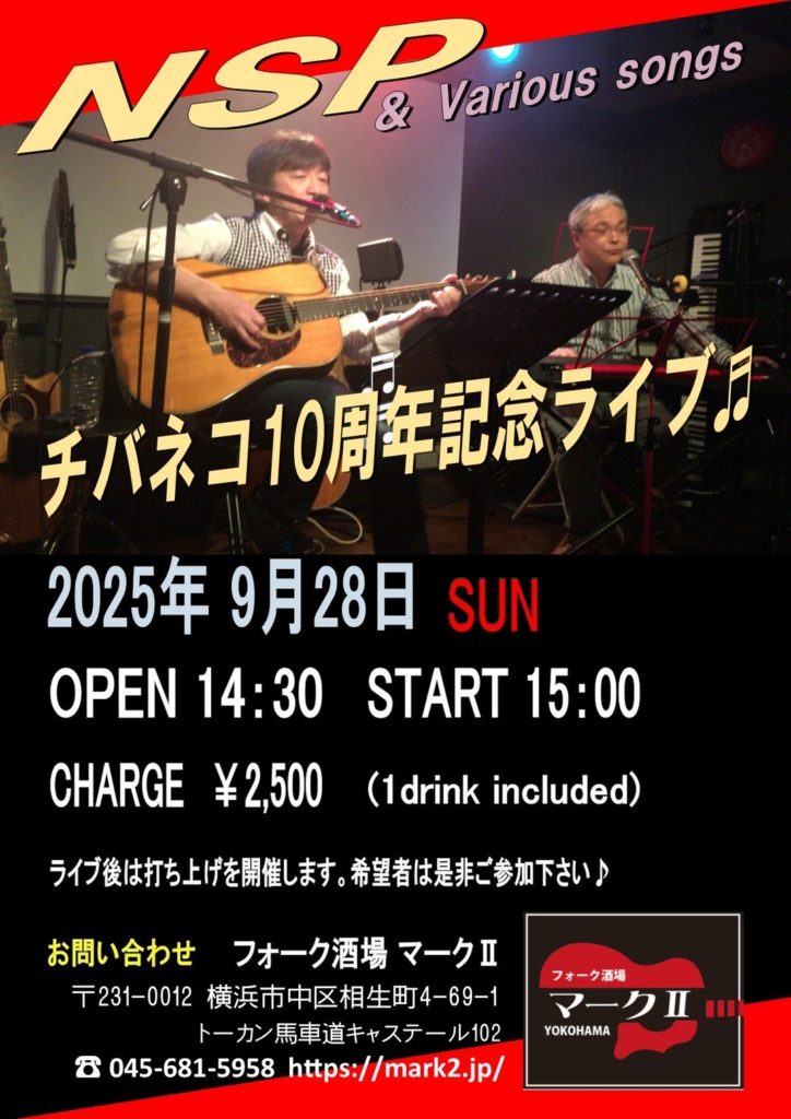 ■NSPコピーユニット「チバネコ」が今年で結成10周年を迎えるにあたって、マークⅡで記念ライブを開催します。